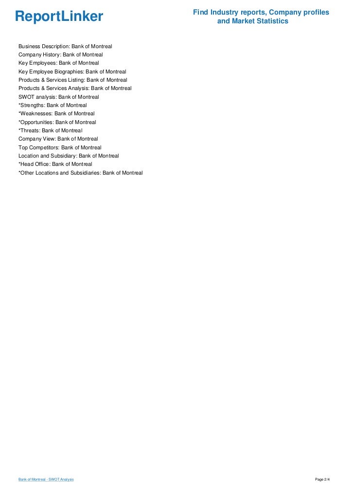 Swot analysis is a proven management framework which enables a brand like deutsche bank to benchmark its business & performance as compared to the competitors and industry. Swot analysis is a proven management framework which enables a brand like bank of montreal to benchmark its business & performance as compared to the competitors and industry. Swot analysis is an important analysis for any organization. However, in strength there is also a weakness and large banks also have challenging marketing environments to deal with. A swot analysis is a tool that is used to determine strengths, weaknesses, opportunities, and threats for business or individuals.