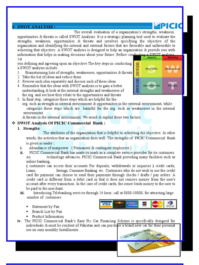 Possible swot analysis for a large bank larger banks have natural economic and customer base advantages in the marketplace, as compared to their smaller competitors. A swot analysis of a bank formally evaluates the financial institution's strengths, weaknesses, opportunities and threats. Conducting a swot analysis of a bank is identical to doing this analysis for any other type of product, industry, or company. Managers usually use this analysis to check the strengths and weakness of the organization and its present resources. It helps in shaping the life of human race may be some time merely by exchange (which was called barter system), or by transaction or by facilitating advances.