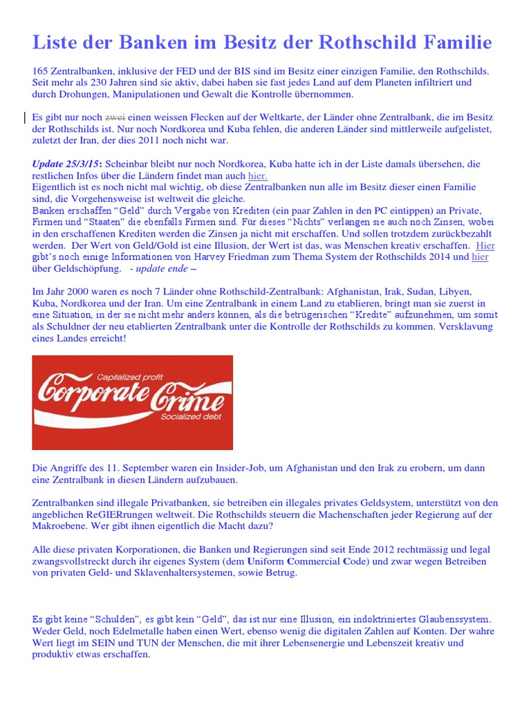 In deutschland gibt es eine fülle an banken. Die beiden schweizer grossbanken (credit suisse und ubs), 24 kantonalbanken, 62 regionalbanken und sparkassen, 7 privatbankiers, die raiffeisenbank und viele weitere inländische und ausländische finanzinstitute betreiben insgesamt etwa 3'100 filialen und geschäftsstellen. Ich denke schon das die rothschilds über ihren einfluss haben. Ihr zusammenbruch gilt als gefahr für das gesamte finanzsystem: 100% banken.de wurde als sicher und jugendfrei geprüft.